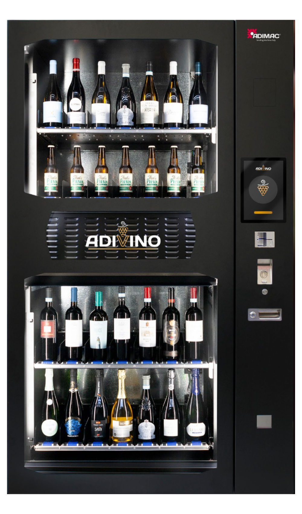 DIVINO ist ein Verkaufsautomat für Flaschenweine und Biere, der den Kauf bequem und rund um die Uhr ermöglicht. Er ist überall einsetzbar und bietet eine sichere Entnahme dank eines internen Lifts. Zwei Temperaturzonen sorgen für optimale Konservierung, während das ADIMAC-Cloud-System die Echtzeitüberwachung des Automaten erlaubt. Die Innenausstattung ist modular und an unterschiedliche Produktgrößen anpassbar.