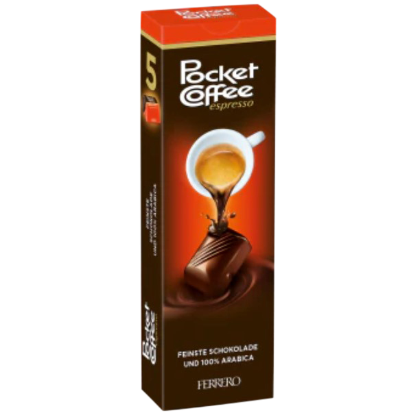 | Kalorien / Nährwerte | Pocket Coffee enthält im Durchschnitt je 100g: Energie (kj / kcal) 1830 / 437 Fett (g) 20, 5 davon gesättigte Fettsäuren (g) 13, 3 Kohlenhydrate (g) 57, 8 davon Zucker (g) 56, 6 Eiweiß (g) 3, 5 Salz (g) 0, 046 |