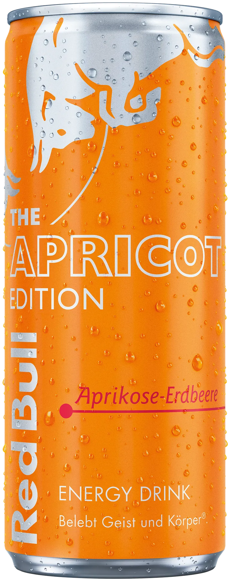 Die RedBull Apricot Edition mit dem fruchtigem Geschmack von Aprikose und Erdbeere.